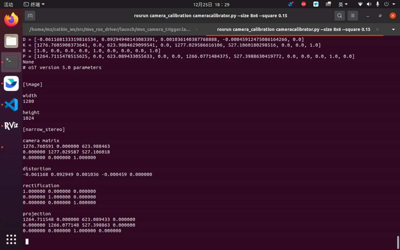 安装ROS的相机内参标定的包